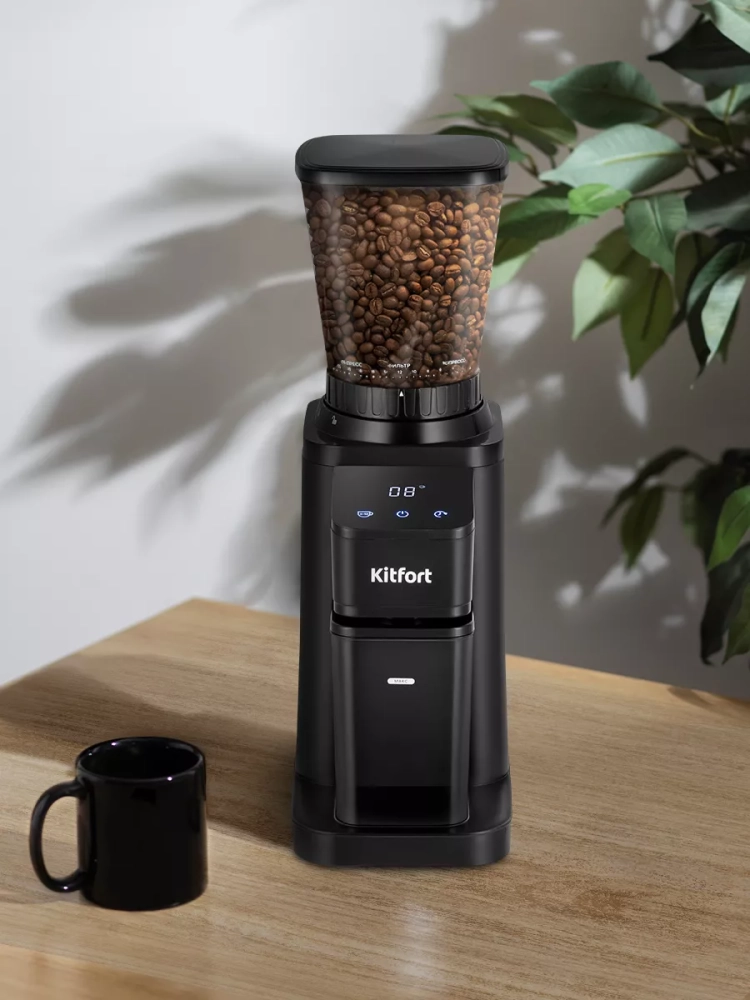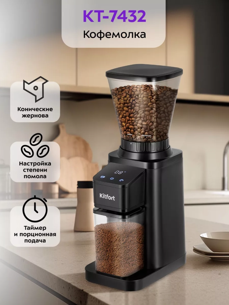 Жерновая кофемолка Kitfort КТ-7432 предназначена для помола кофейных зерен. Она оснащена коническими жерновами из нержавеющей стали.
