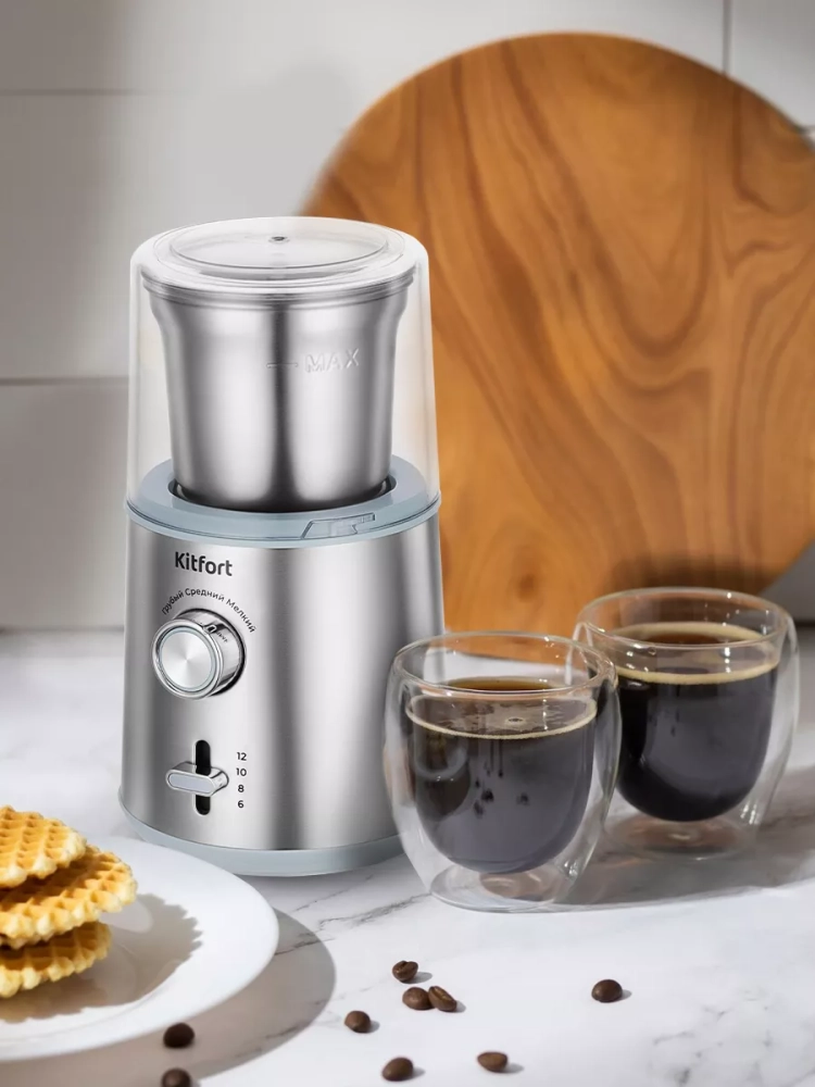 Роторная кофемолка Kitfort КТ-7250 предназначена для помола кофейных зерен и измельчения специй и орехов. Кофемолка укомплектована съемной чашей из нержавеющей стали и прозрачной крышкой. В чаше установлен двухлезвийный нож-дробилка для эффективного измельчения зерен кофе или специй.