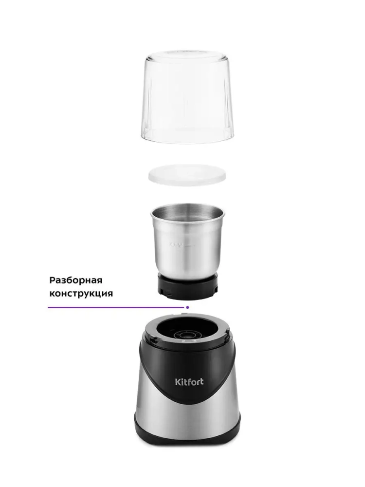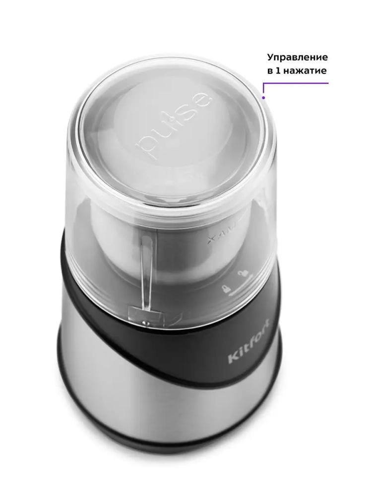Мощная кофемолка Китфорт КТ-745 предназначена для помола кофейных зерен и измельчения специй и орехов. Она укомплектована прозрачной крышкой и съемной чашей с силиконовой крышкой. В чаше установлен четырехсторонний нож для эффективного измельчения зерен кофе или специй.