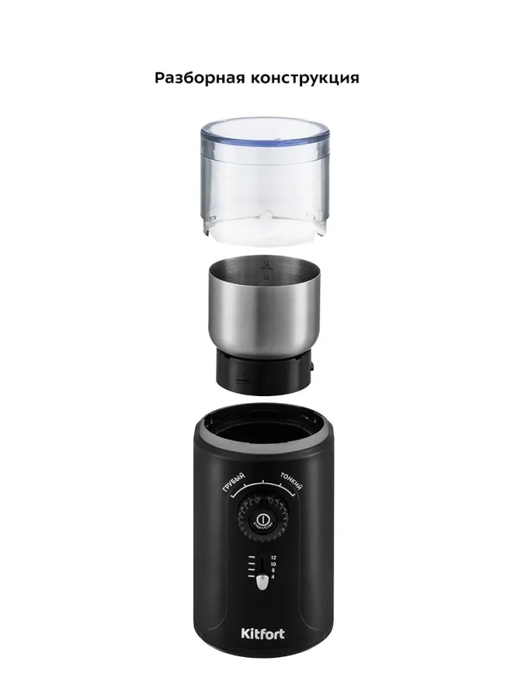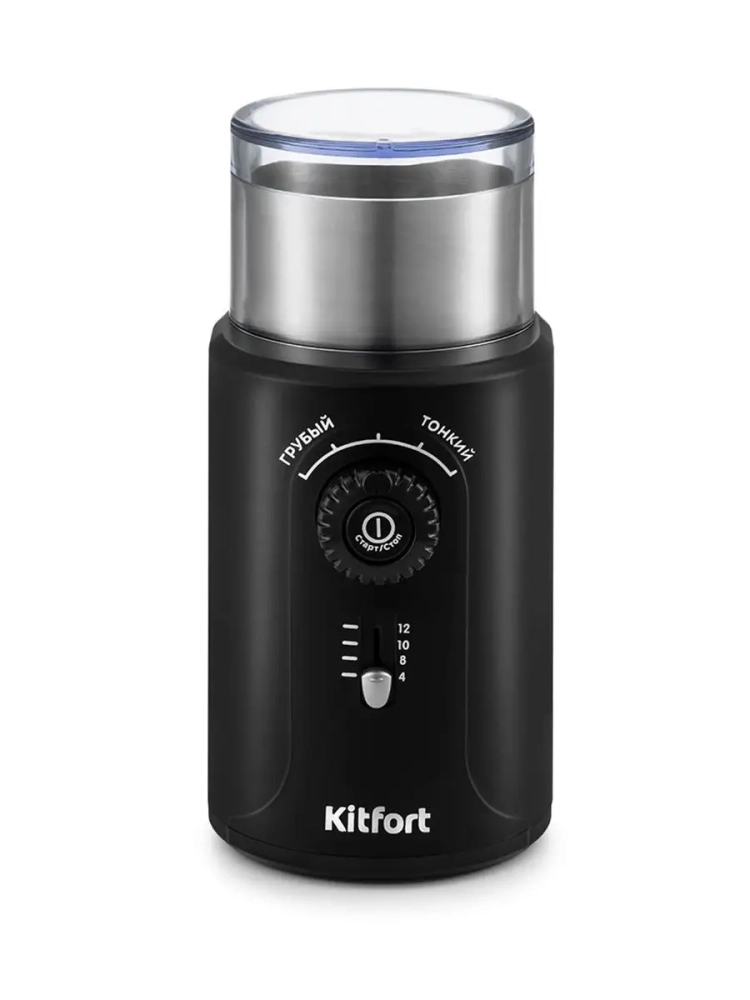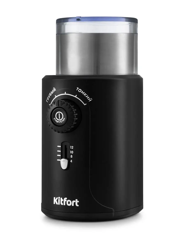 Мощная кофемолка Китфорт КТ-747 с электронным управлением предназначена для помола кофейных зерен и измельчения специй и орехов. Кофемолка укомплектована съемной чашей из нержавеющей стали и прозрачной крышкой. В чаше установлен двухлезвийный нож-дробилка для эффективного измельчения зерен кофе или специй. Прибор оснащен регуляторами степени помола и количества чашек. Кнопка включения расположена на регуляторе степени помола. Защитный механизм не позволит включить кофемолку, если крышка установлена неправильно. Корпус кофемолки выполнен из пластика, а на дне есть специальные прорезиненные нескользящие ножки. В нижней части корпуса имеется отсек для хранения сетевого шнура с механизмом смотки.