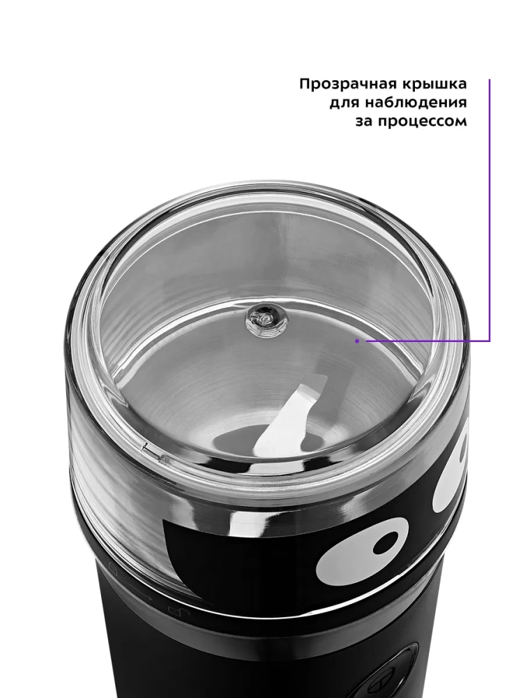 Кофемолка Китфорт КТ-799 предназначена для помола кофейных зерен и измельчения специй и орехов. Кофемолка укомплектована двумя съемными чашами: чашей для кофе и чашей для специй. В чаше для кофе установлен двулезвийный нож для эффективного помола зерен кофе, а в чаше для специй - четырехлезвийный нож для измельчения. Чаша для кофе выполнена из сочетания нержавеющей стали и пластика, а чаша для специй из нержавеющей стали. Ножи выполнены из нержавеющей стали. При включении кофемолки ножи быстро вращаются, измельчая продукты. Степень помола зависит от продолжительности измельчения. Корпус кофемолки выполнен из пластика. На дне корпуса есть специальные прорезиненные нескользящие ножки, которые придают устойчивость прибору во время работы. А также отсек для намотки шнура. Кофемолка проста в эксплуатации, т.к. включается она простым нажатием на кнопку включения. Защитный механизм не позволит включить кофемолку, если верхняя крышка не установлена.