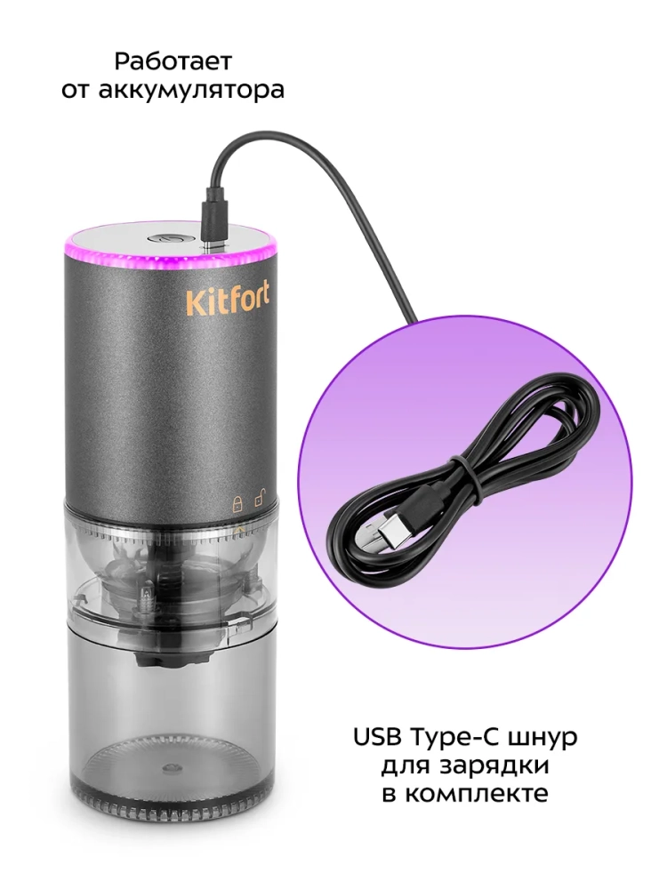 Кофемолка электрическая жерновая беспроводная КТ-7484