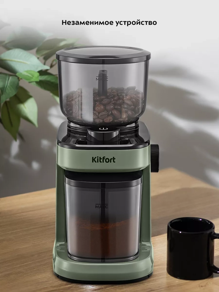 Жерновая кофемолка Kitfort КТ-7267 предназначена для помола кофейных зерен. Она оснащена плоскими металлическими жерновами.