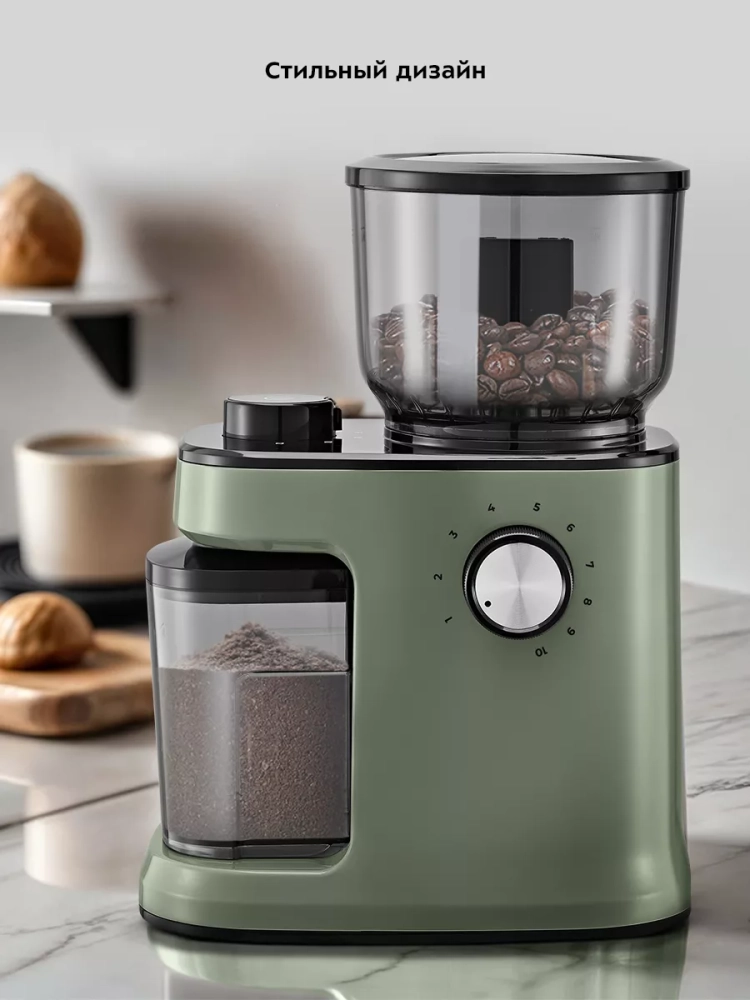 Прорезиненные ножки не дают кофемолке скользить по столу.