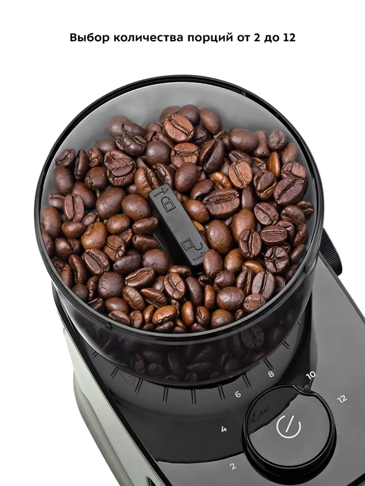 Жерновая кофемолка дает равномерный помол и позволяет настроить его степень: от мелкого — для эспрессо, до крупного — для кофе во френч-прессе. Равномерный помол важен для рожковых кофеварок: он положительно влияет на вкус эспрессо. При помоле в жерновой кофемолке кофе не перегревается, как это происходит в роторных кофемолках. Вы можете выбрать, какое количество кофе требуется смолоть за один раз. Кофемолка смелет нужное количество кофе и автоматически отключится.