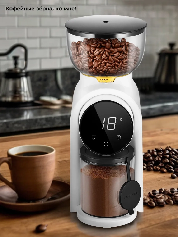 У кофемолки есть LED-дисплей и сенсорное управление, что делает устройство удобным в использовании.
