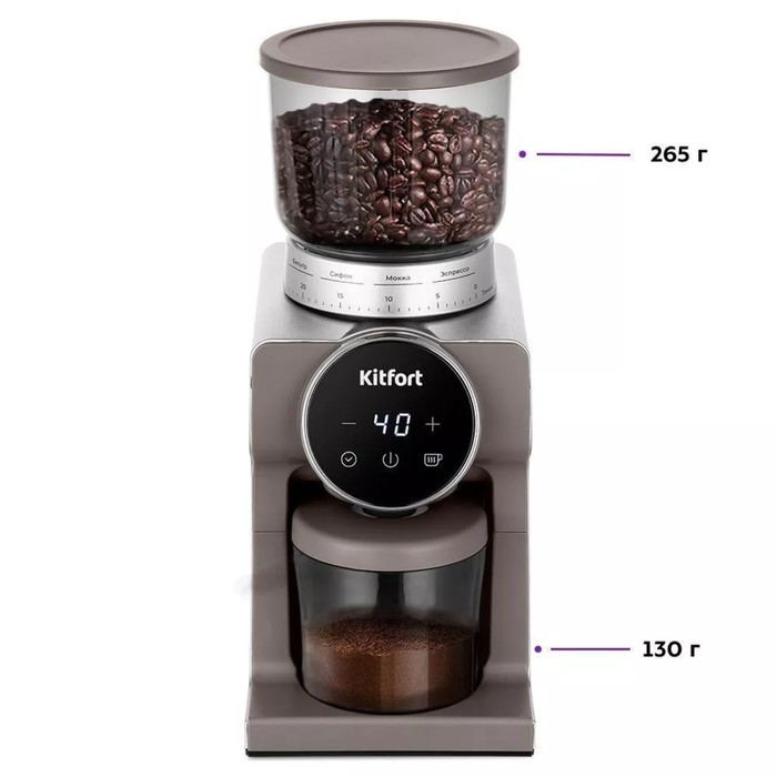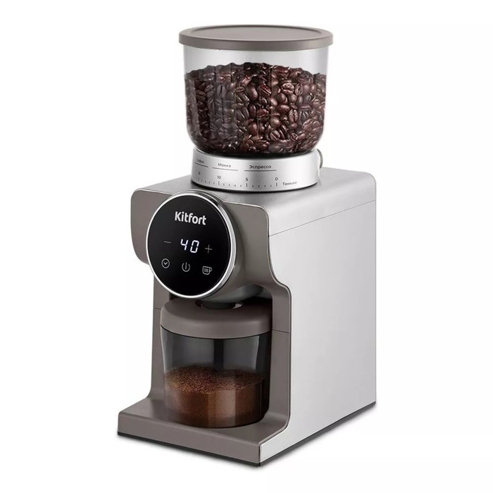 Кофемолка Kitfort КТ-7268, электрическая, жерновая, 160 Вт, 265 г, регулировка помола, серая 1053307
