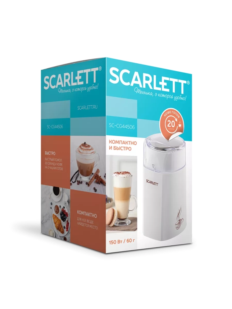 Кофемолка Scarlett - один прибор и множество решений по его использованию, возможность помола кофе, орехов, специй, сухарей для панировки. Максимальный размер порции зерен для помола составляет 60 г, что позволит приготовить 4-5 чашек кофе. Импульсный режим работы помогает предотвратить перегрев мотора, т.к. двигатель работает с кратковременными паузами. Лезвия из высококачественной нержавеющей стали быстро измельчат кофейные зерна, а за степенью помола можно наблюдать через прозрачную крышку.