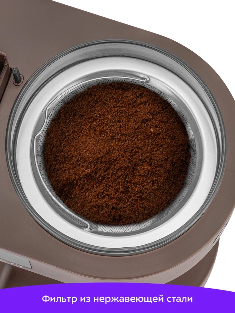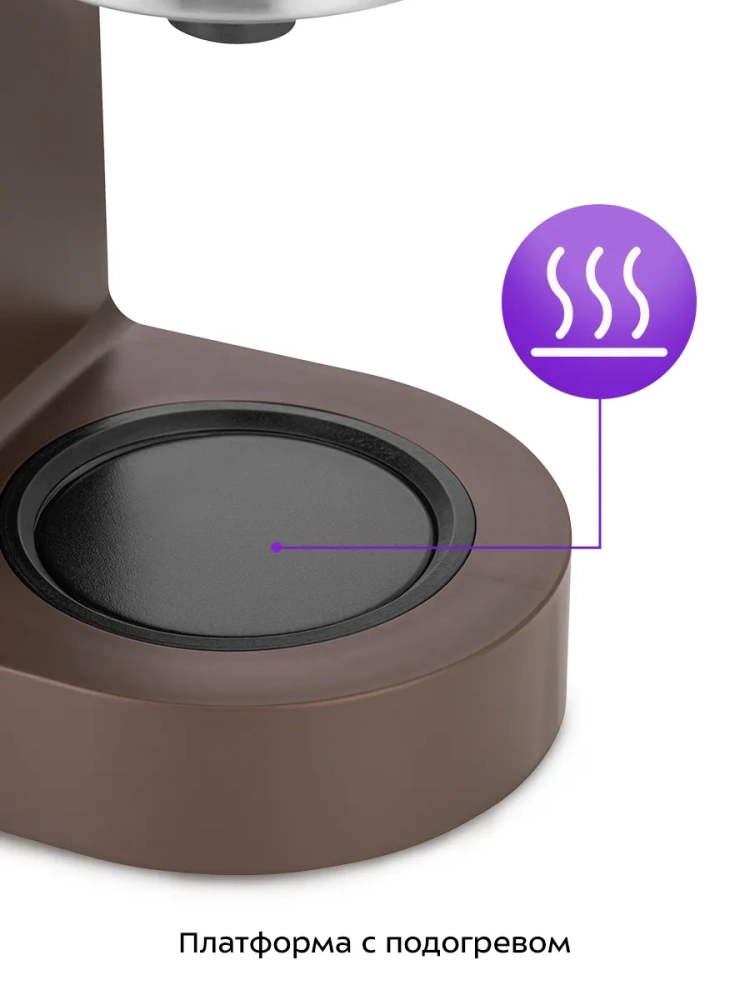При приготовлении вода нагревается, а затем подается в фильтр с молотым кофе или чаем. Фильтры многоразовые, ими можно пользоваться неограниченное количество раз. Для кофе и чая предусмотрены отдельные фильтры. У фильтра для чая немного более крупные отверстия. Пройдя через фильтр, напиток поступает в стеклянный кофейник. В месте установки кофейника находится платформа для подогрева. При включении кофеварки, включается нагревательный элемент, расположенный под платформой. Он нагревает воду, поступающую из резервуара, и платформу для подогрева. По завершении приготовления кофе платформа продолжит нагреваться. Вы можете настроить время подогрева от 30 минут до 4 часов. После приготовления чая платформа с подогревом не включается.