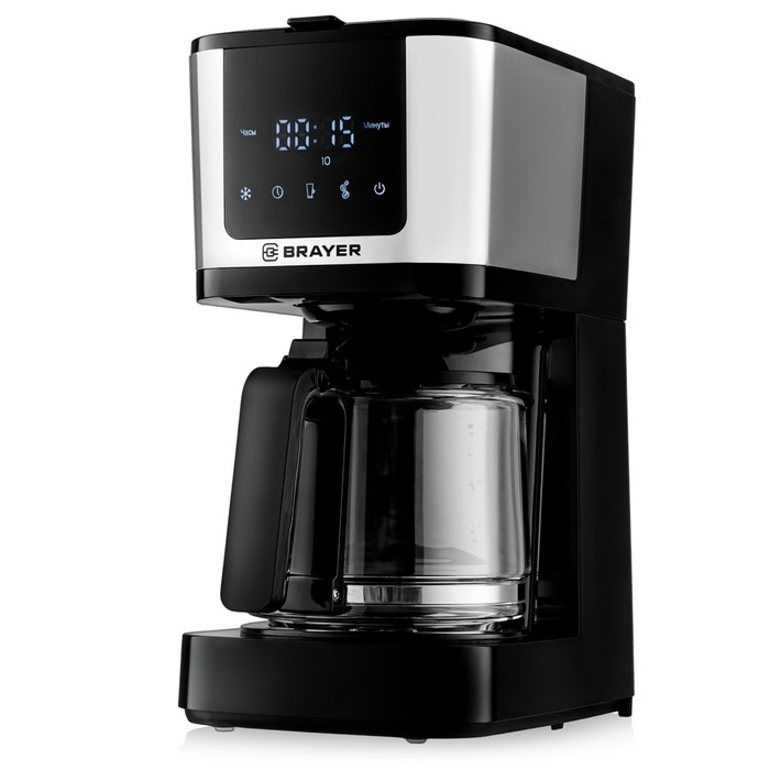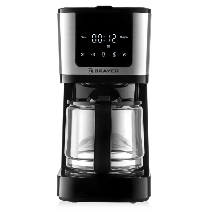 Кофеварка BRAYER 1125BR, капельная, 900 Вт, 1,25 л, чёрно-серебристая