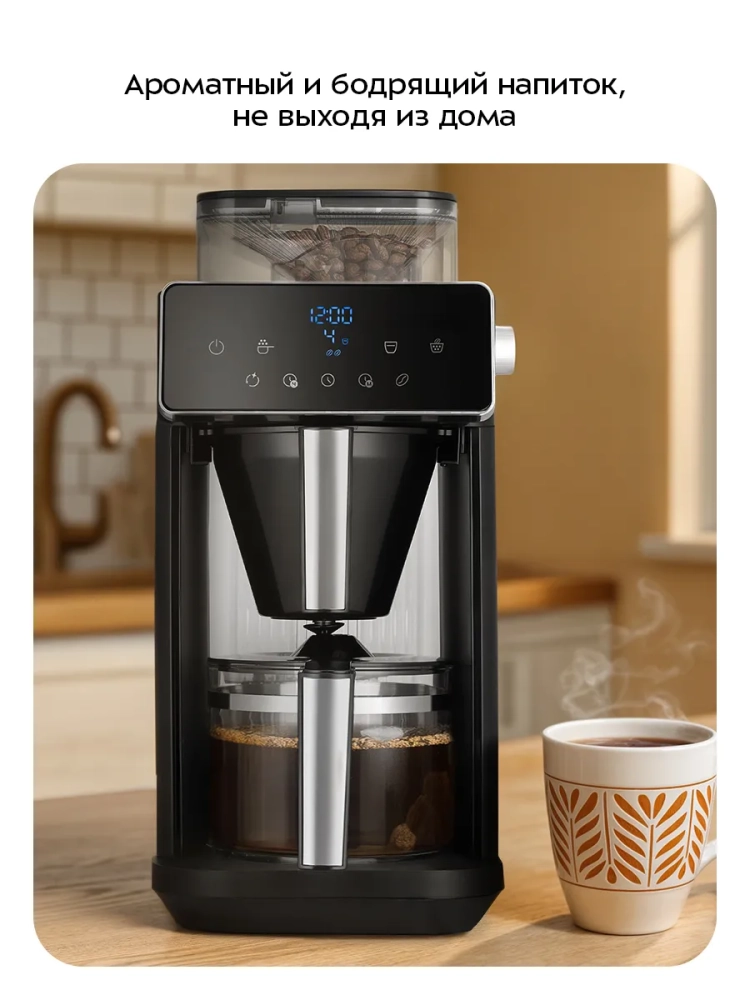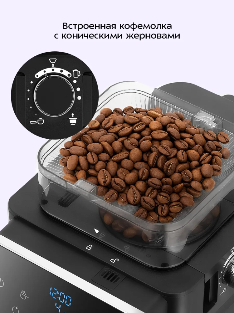 Функция отложенного старта позволит начать приготовление кофе в заданное время. Установите время приготовления, и к моменту, когда вы проснетесь, вас будет ждать ароматный свежезаваренный кофе.