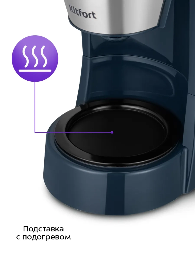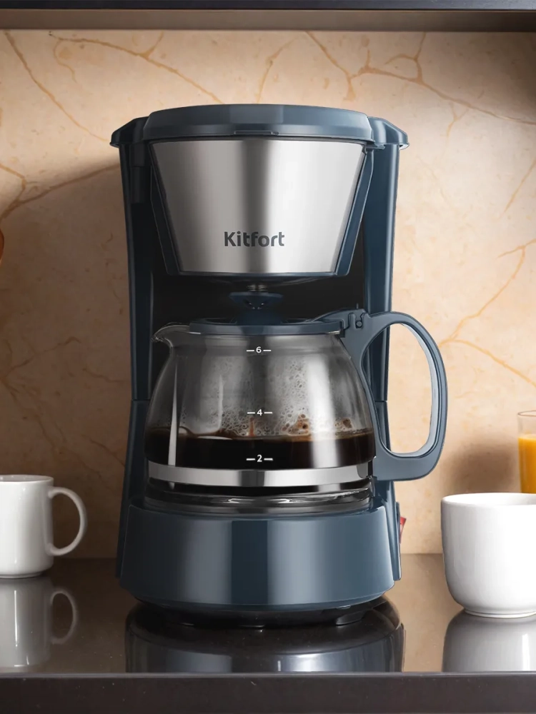 Капельная кофеварка Kitfort КТ-7376 готовит ароматный черный кофе из молотого кофе.
