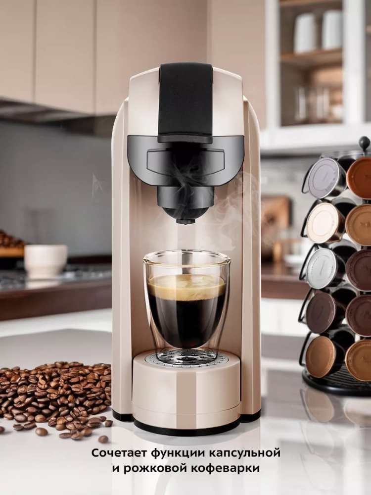 Кофеварка «3 в 1» KT-7462 совмещает в себе все преимущества рожковой и капсульной кофеварок.