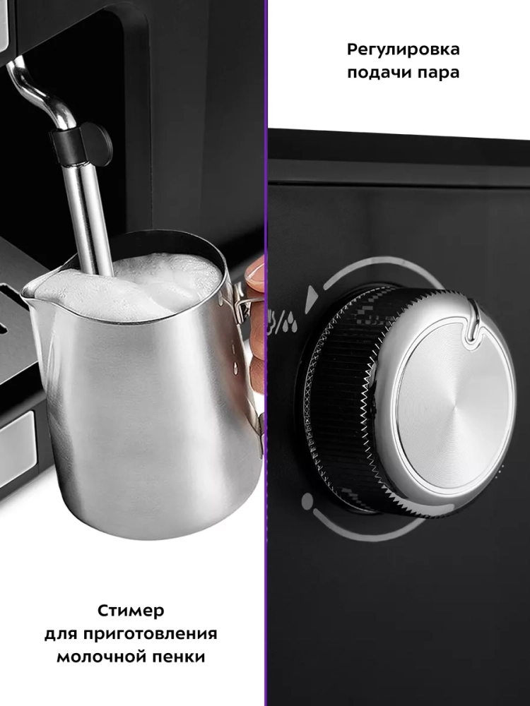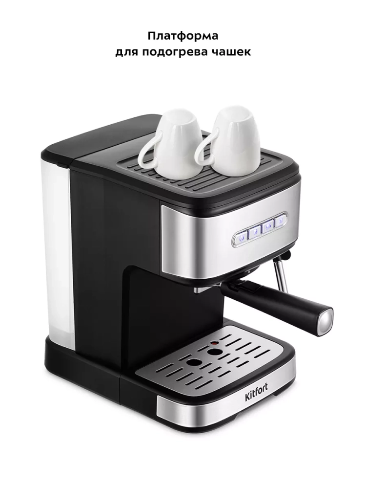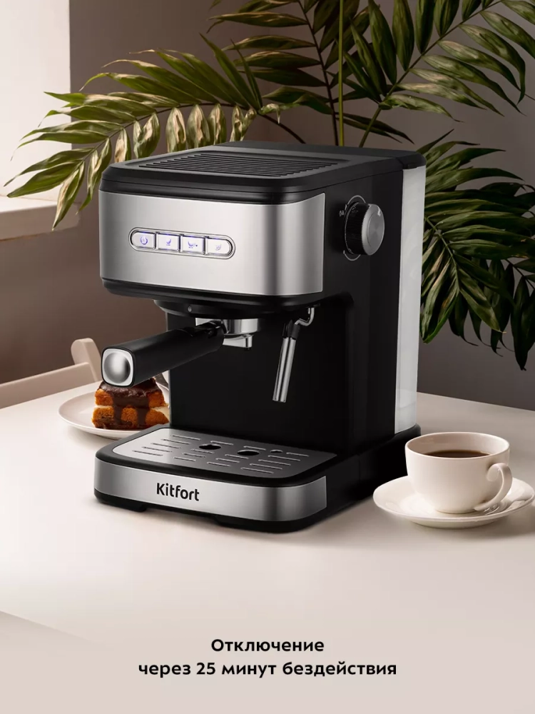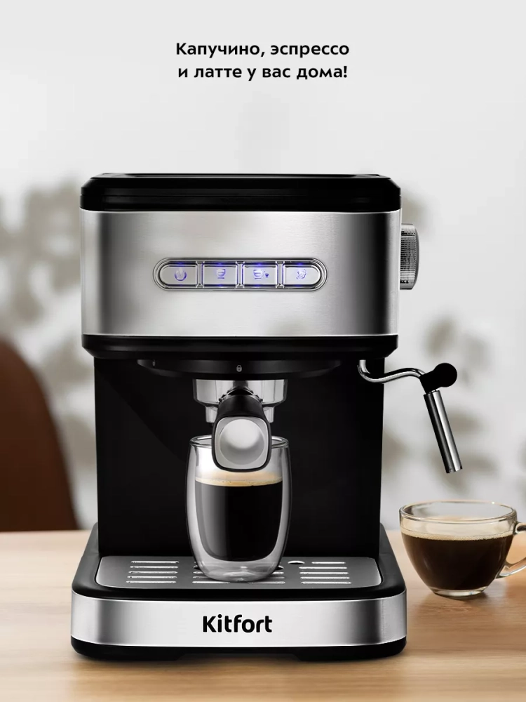 Кофеварка Kitfort КТ-7225 поможет приготовить кофе эспрессо, капучино или латте, а также множество других видов кофе на ваш вкус. С помощью стимера вы можете приготовить молочную пенку, а также подогреть паром остывший чай или молоко.