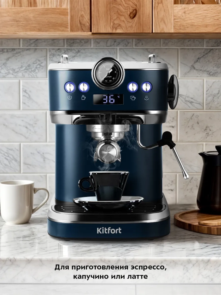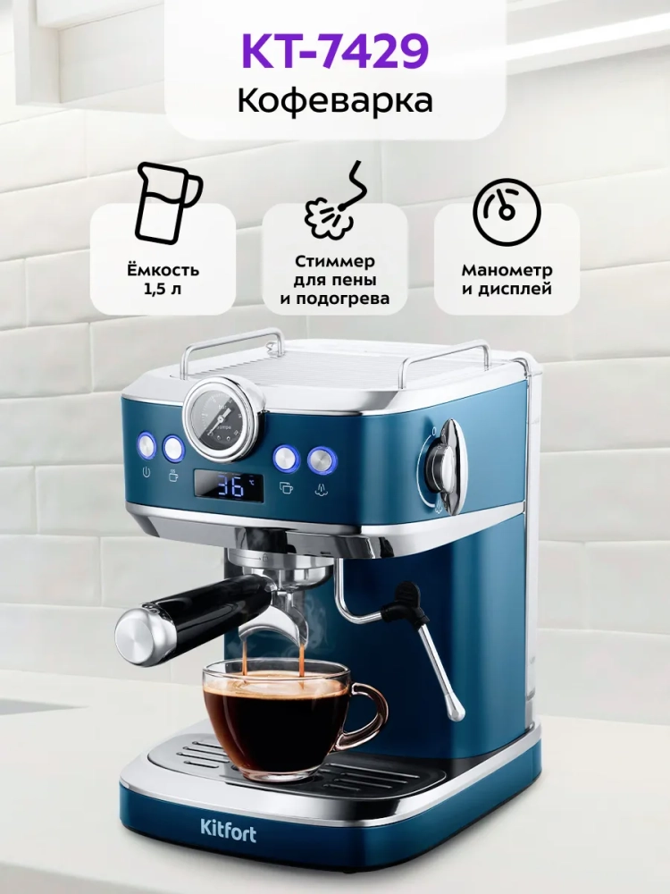 Рожковая кофеварка Kitfort КТ-7429 поможет приготовить кофе эспрессо, капучино или латте, а также множество других видов кофе на ваш вкус. С помощью рожковой кофеварки вы можете подогреть паром остывший чай или молоко.