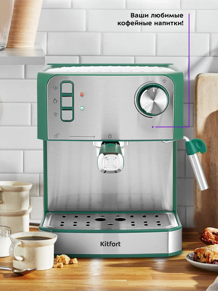 Кофеварка Kitfort КТ-7441 поможет приготовить кофе эспрессо, капучино или латте, а также другие виды кофе на ваш вкус. С помощью стимера вы можете приготовить молочную пенку, а также подогреть паром остывший чай или молоко.