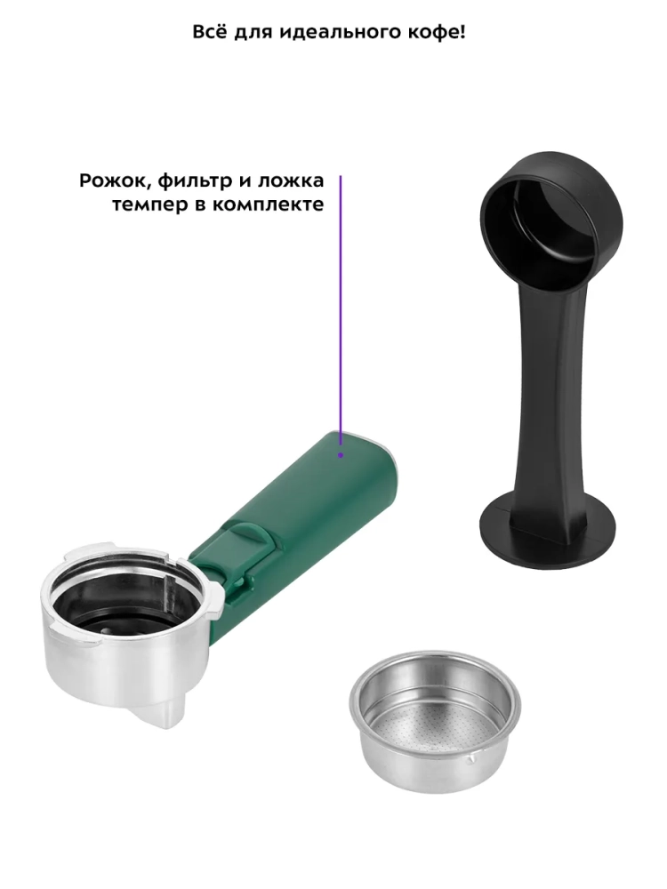 Металлический фильтр с лазерным нанесением отверстий долговечен и не требует использования каких-либо расходующихся частей. Кофеварка оснащена съемным резервуаром для воды и металлическим рожком. Рожок хорошо прогревает кофе, а сам напиток получается насыщенным, густым и с хорошей пенкой.