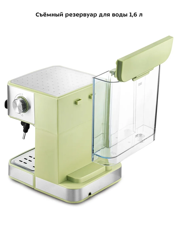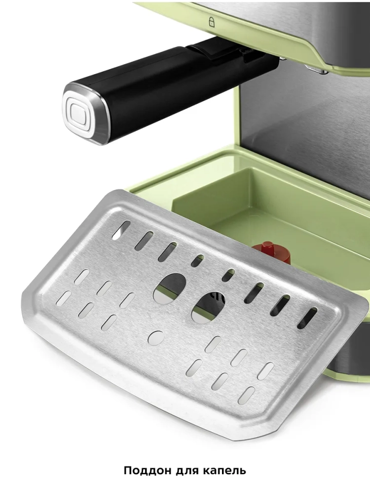 Металлический фильтр с лазерным нанесением отверстий долговечен и не требует использования каких-либо расходующихся частей. Кофеварка оснащена съемным резервуаром для воды и металлическим рожком. Рожок хорошо прогревает кофе, а сам напиток получается насыщенным, густым и с хорошей пенкой.