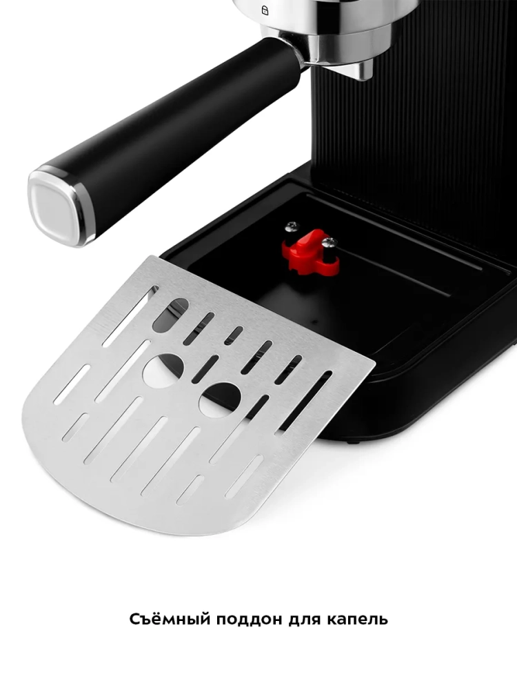 Металлические фильтры с лазерным нанесением отверстий долговечны и не требуют использования каких-либо расходующихся частей. Кофеварка оснащена съемным резервуаром для воды и металлическим рожком. Металлический рожок хорошо прогревает напиток, сам напиток получается насыщенным, густым и с хорошей пенкой.