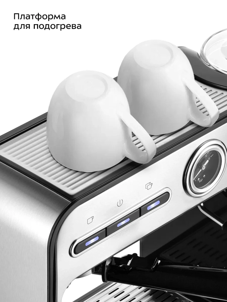 Металлический рожок хорошо прогревает напиток, и кофе получается насыщенным, густым и с хорошей пенкой. Металлические фильтры с лазерным нанесением отверстий долговечны и не требуют использования каких-либо расходующихся частей. Мерная ложка-темпер поможет наполнить рожок и утрамбовать в нем кофейную таблетку.