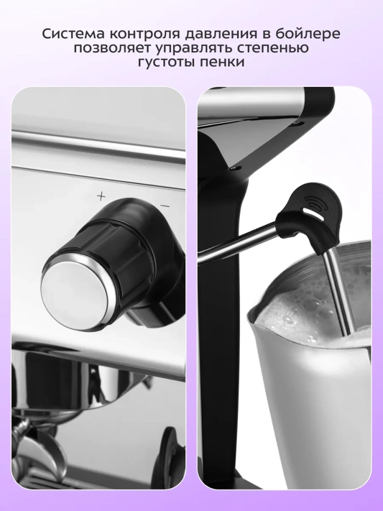 Когда кофемашина нагреется, вы сможете сделать молочную пенку самостоятельно. Поверните регулятор против часовой стрелки и настройте комфортную вам силу подачи пара. Понадобиться некоторая сноровка, но итоговый результат вас не разочарует!
