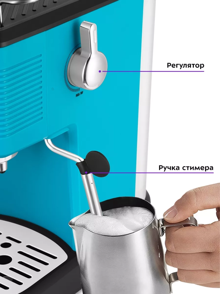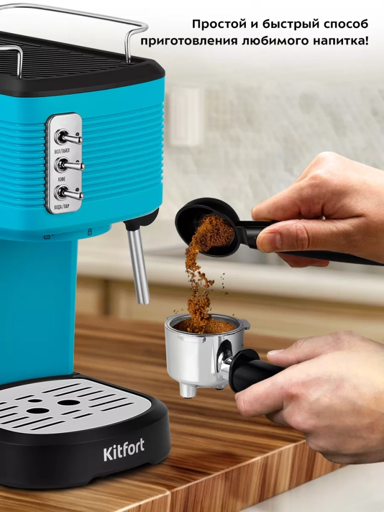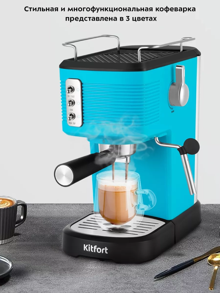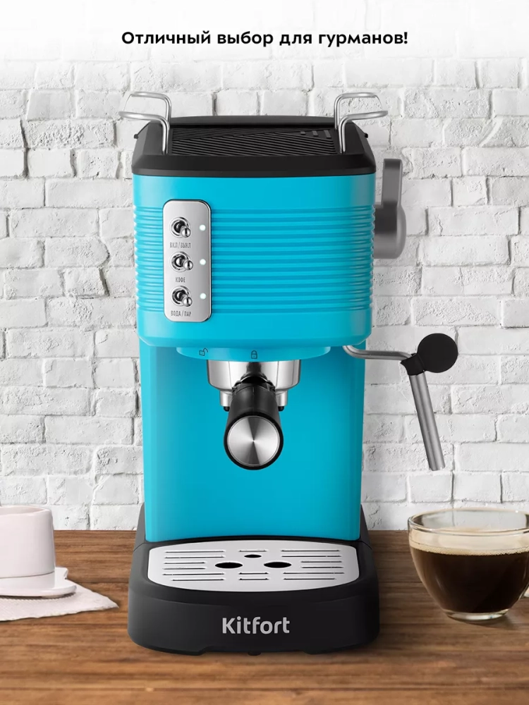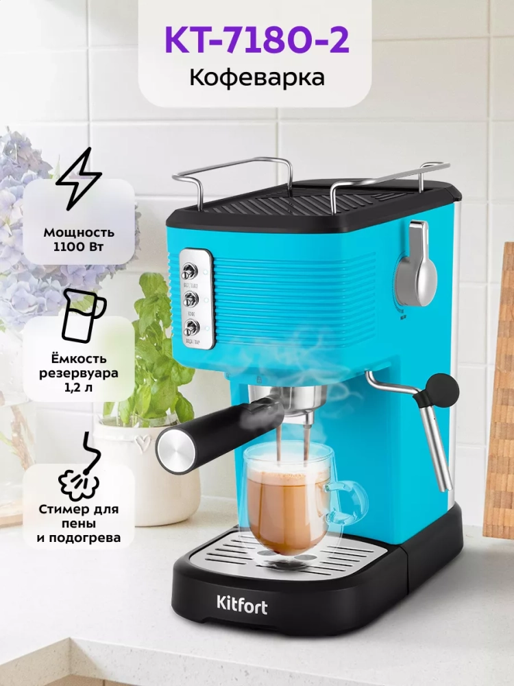 Рожковая кофеварка Kitfort КТ-7180 поможет приготовить кофе эспрессо, капучино или латте, а также множество других видов кофе на ваш вкус. С помощью стимера в рожковой кофеварке вы можете подогреть паром остывший чай или молоко.