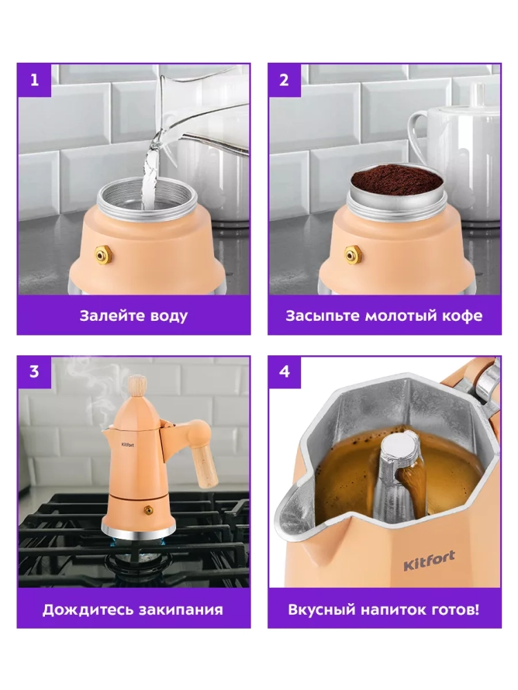 Гейзерная кофеварка Kitfort КТ-7152 поможет приготовить черный кофе.