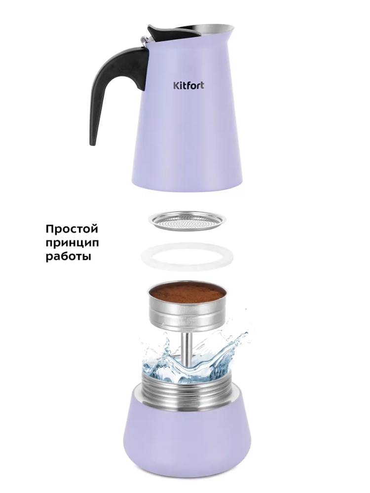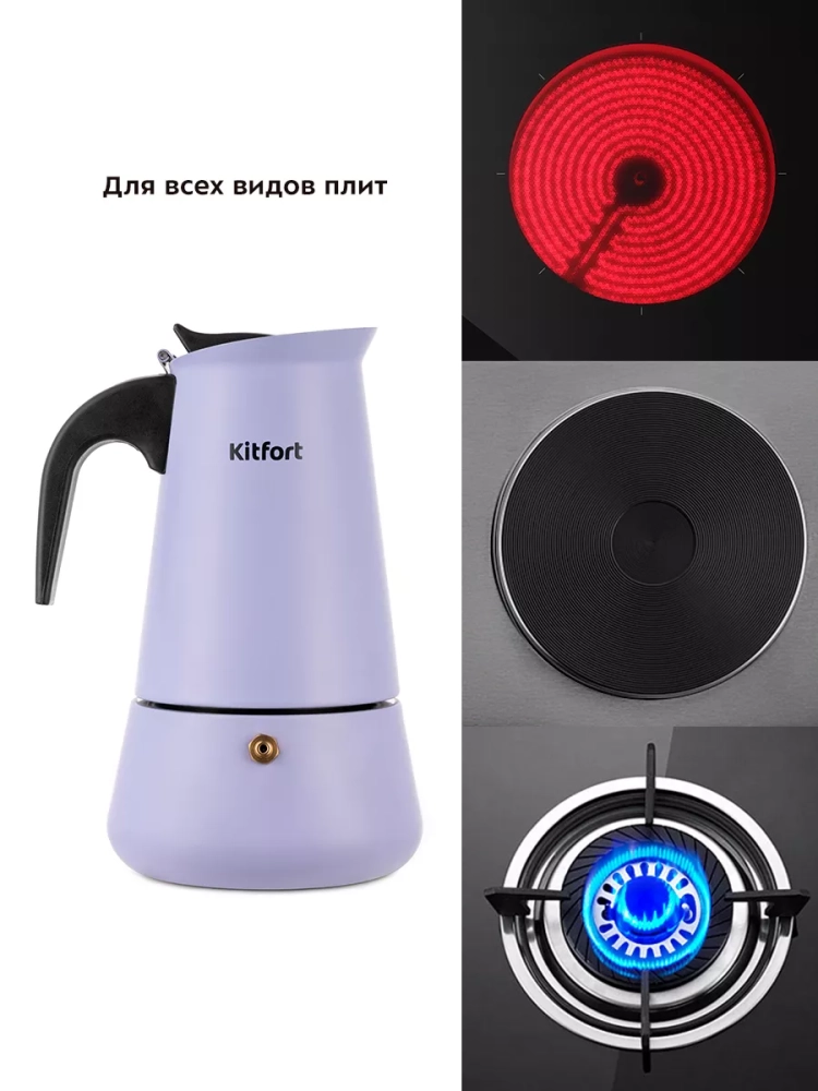 Гейзерная кофеварка Kitfort КТ-7149 поможет приготовить черный кофе.