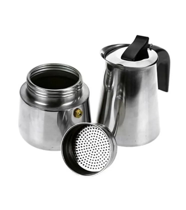 Практичная, надёжная кофеварка из нержавеющей стали прослужит длительное время. Классический дизайн. Ручка и кнопка выполнены из прочного нейлона. Предохранительный клапан давления. Главный принцип гейзерной кофеварки — прохождение кипящей воды не сверху вниз под давлением или действия силы тяжести (как в капельных кофеварках или экспресс-машинах), а снизу верх (закипающая вода поднимается в виде пара). Гейзер состоит из нижней ёмкости для воды специального сита-фильтра для кофе и верхнего чайника для уже готового напитка. Истинным кофеманам отлично подойдет гейзерная кофеварка с минималистичным дизайном, которая впишется в любой интерьер кухни. Корпус выполнен из утолщенной стали. Подходит для всех видов плит, кроме индукции. Не подходит для посудомоечной машины. Важно! Необходим кофе среднего помола. Кофеварка гейзерная будет отличным подарком для любого человека.