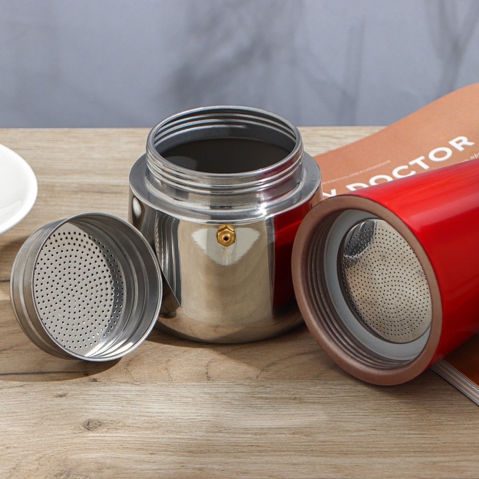 Кофеварка гейзерная «Итальяно», 450 мл, на 9 чашек, цвет красный