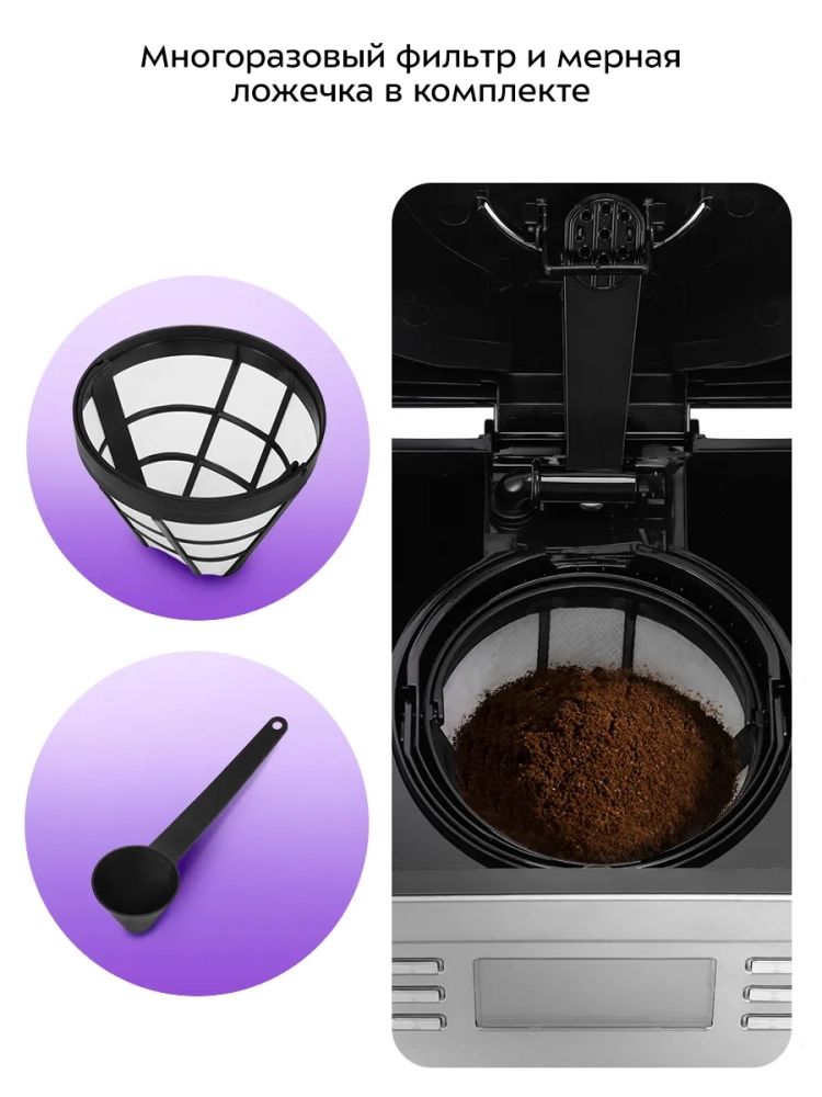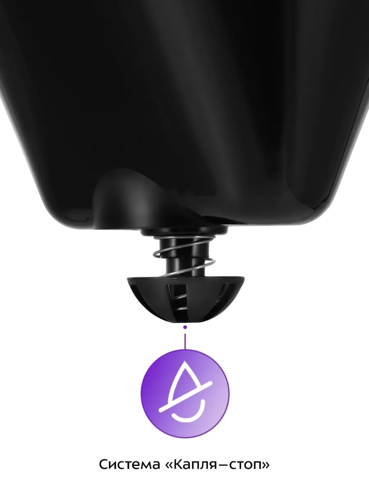 Воронка кофеварки оборудована противокапельной системой — затвором, приостанавливающим подачу кофе при вынимании кофейника из кофеварки. Вы можете налить кофе в чашку, не дожидаясь окончания приготовления.