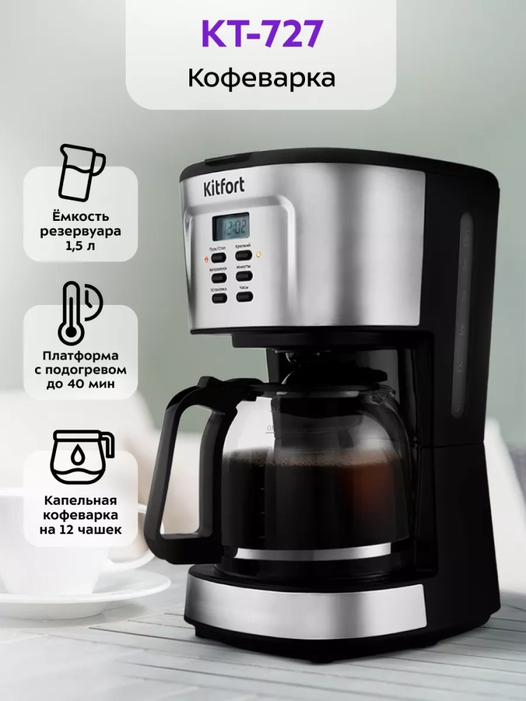 Кофеварка капельная электрическая КТ-727 - 900 Вт - 1.5 л