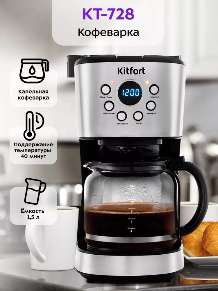 Капельная кофеварка Китфорт КТ-728 поможет приготовить ароматный кофе.