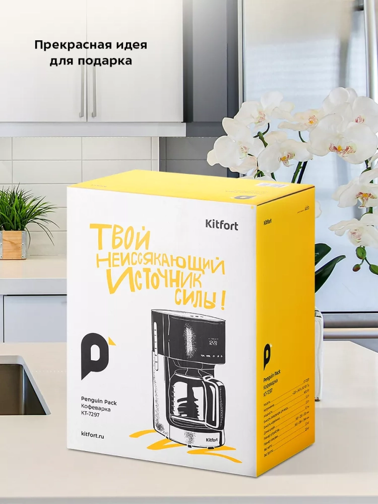 Капельная кофеварка Kitfort КТ-7297 готовит ароматный черный кофе из молотого кофе. Вы можете выбрать степень крепости кофе.