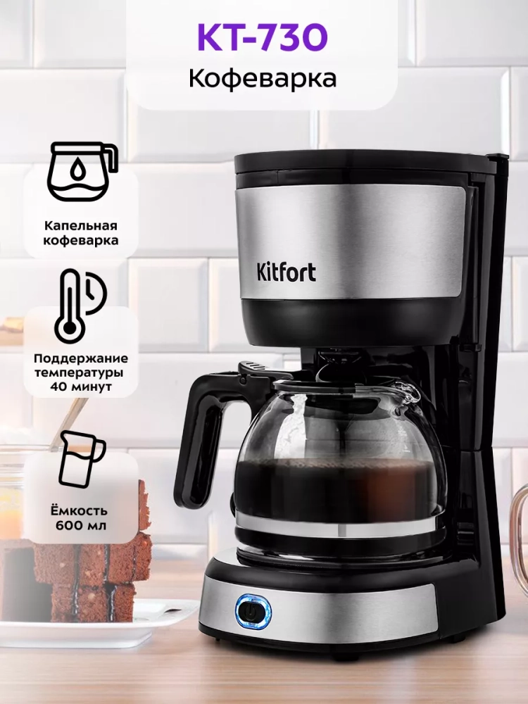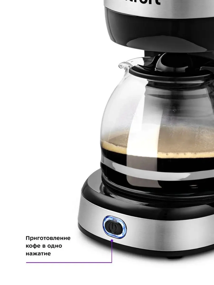 Капельная кофеварка Китфорт КТ-730 готовит ароматный кофе и управляется всего одной кнопкой.