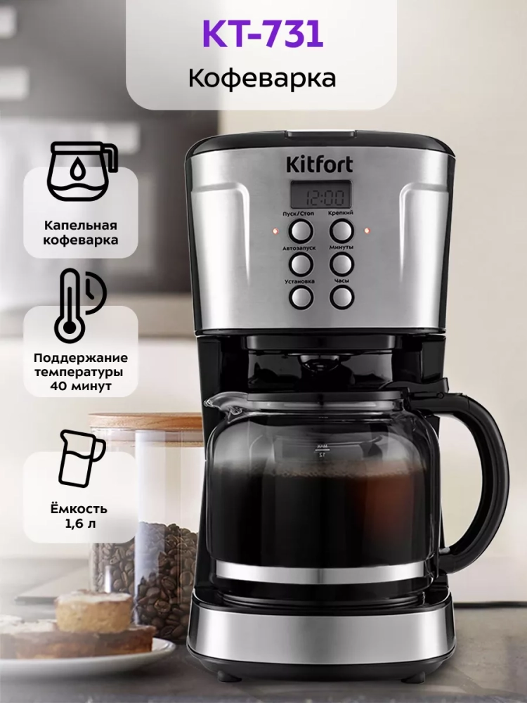 Капельная кофеварка Китфорт КТ-731 поможет приготовить ароматный кофе.