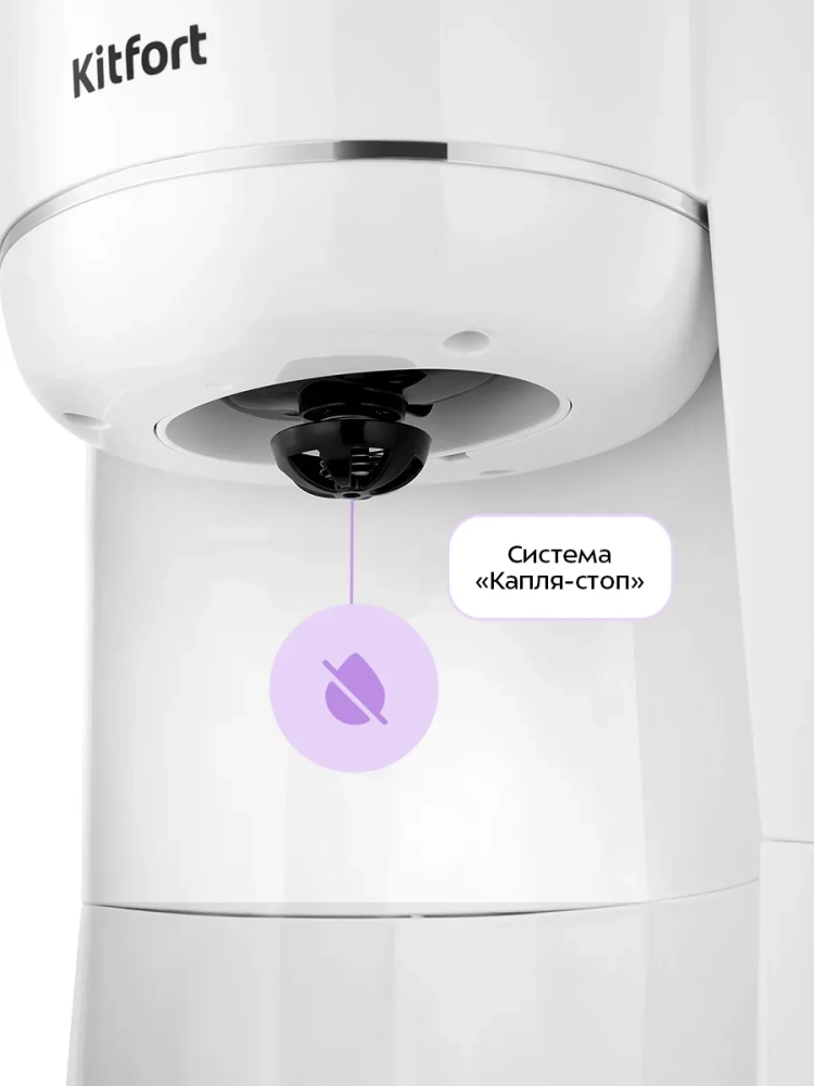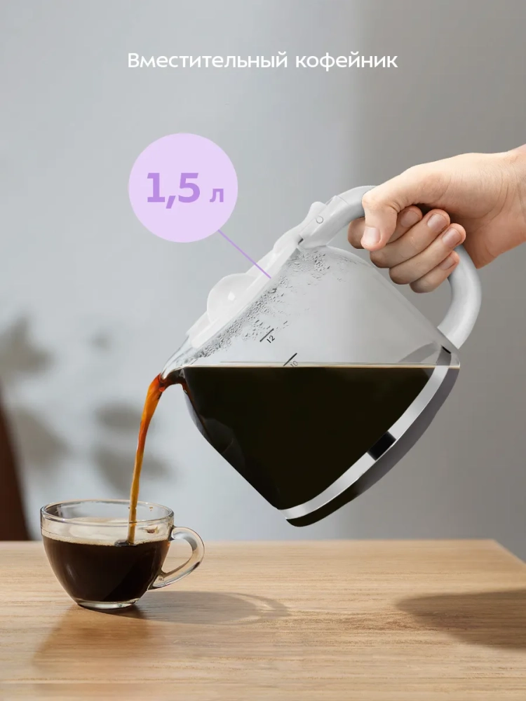 Кофемашина оснащена противокапельной системой, которая предотвращает проливание жидкости при вынимании кофейника, что делает её использование безопасным и удобным. Платформа с подогревом поддерживает температуру кофе в течение 30 минут после приготовления, что позволяет наслаждаться горячим напитком в любое время. Управление кофеваркой осуществляется с помощью кнопки включения/выключения, что делает её эксплуатацию простой и интуитивно понятной.