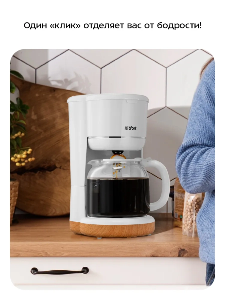 Электрическая капельная кофеварка Kitfort КТ-7453 — это идеальное решение для дома и офиса, обеспечивающее быстрое и удобное приготовление ароматного черного кофе. Эта автоматическая кофемашина мощностью 900 Вт оснащена многоразовым фильтром, который позволяет использовать её неограниченное количество раз, что делает её экономичной и экологичной. Кофеварка оборудована стеклянной колбой объемом 1,5 литра, что позволяет приготовить до 12 чашек кофе за один раз, идеально подходя для использования на кухне или в офисе.