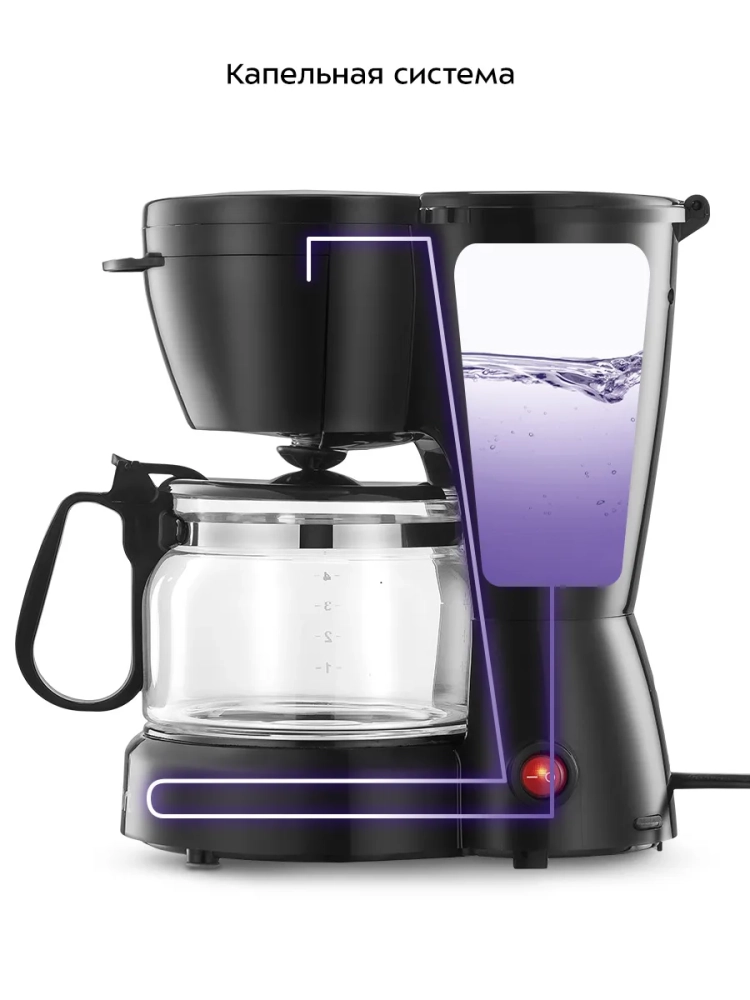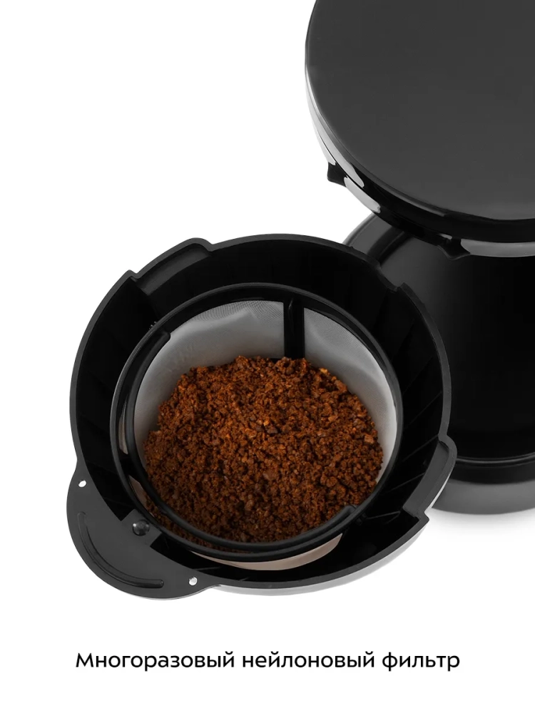 При приготовлении кофе вода нагревается, а затем подается в фильтр с молотым кофе. Многоразовым фильтром можно пользоваться неограниченное количество раз. Пройдя через фильтр, кофе поступает в стеклянный кофейник. В месте установки кофейника находится платформа для подогрева. При включении кофеварки включается нагревательный элемент, расположенный под платформой. Он нагревает воду, поступающую из резервуара, и платформу для подогрева. По завершении приготовления кофе вы можете оставить на некоторое время кофейник на платформе для подогрева, чтобы кофе не остыл.