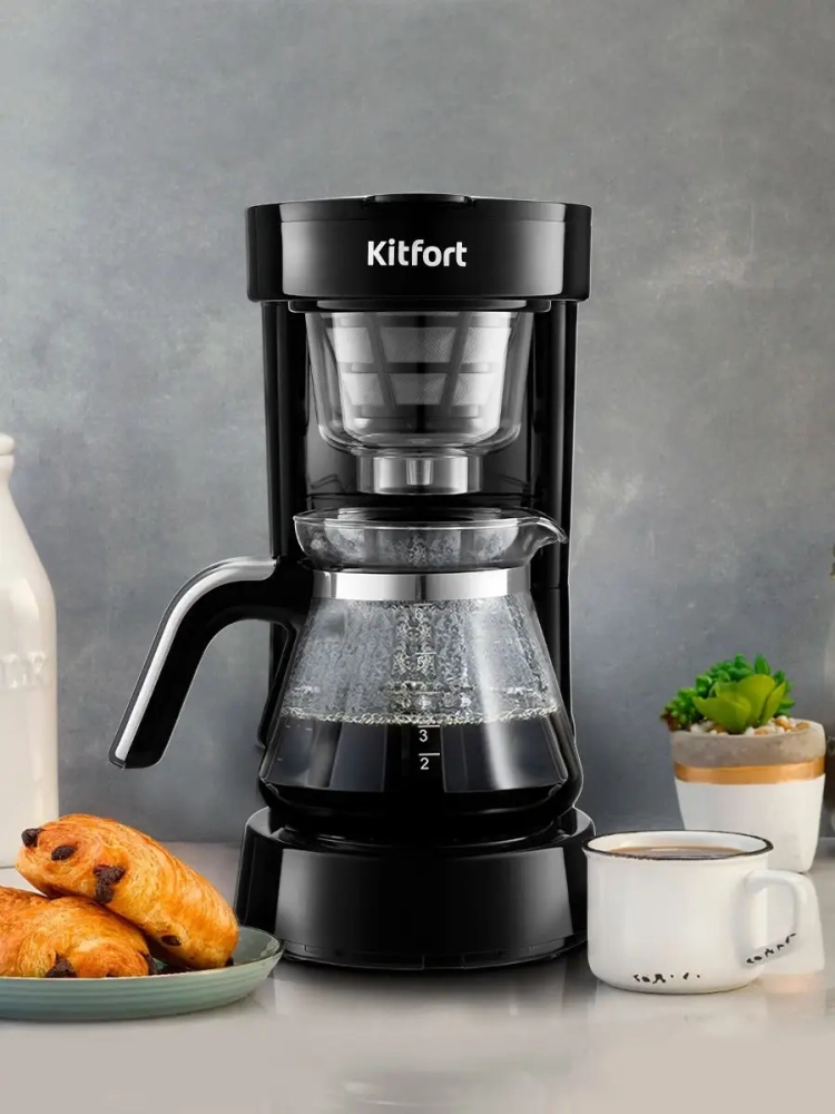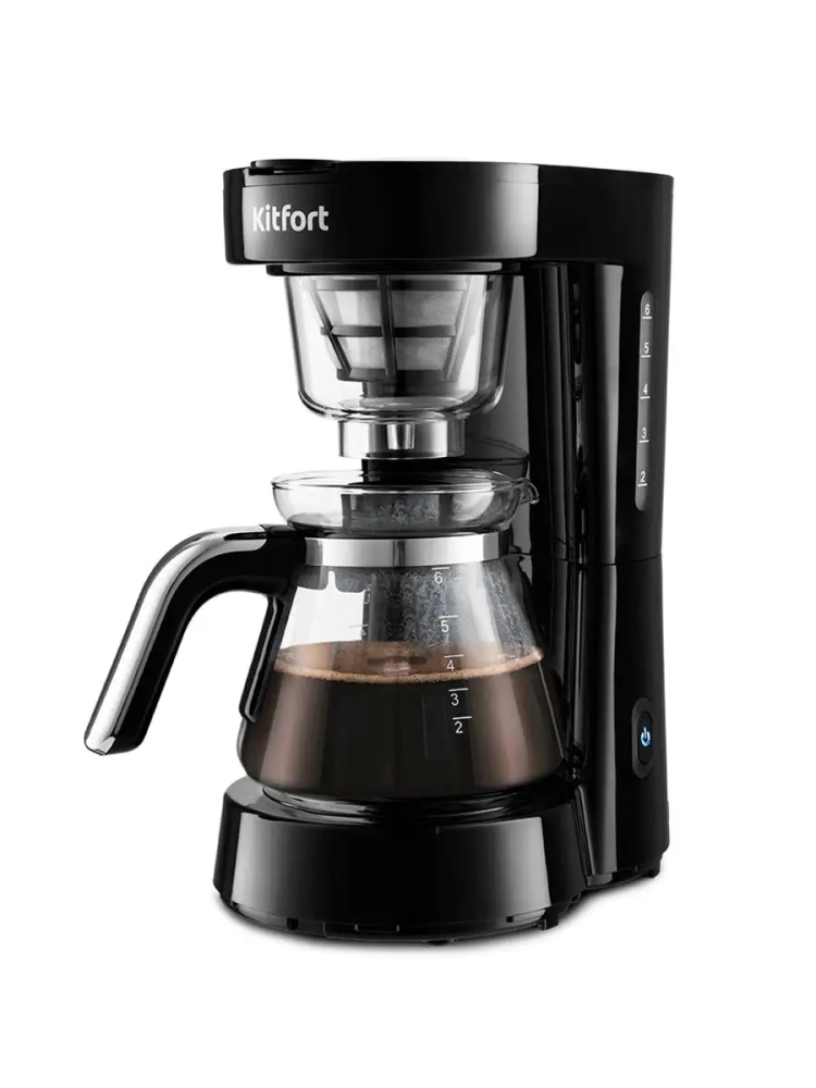 Кофеварка Kitfort — это не просто бытовая техника, а надежный помощник в приготовлении кофе. Она сочетает в себе функциональность и стильный дизайн, что делает ее отличным выбором для ценителей качественного кофе. Воронка для молотого кофе и удобный режим работы делают процесс приготовления простым и быстрым.