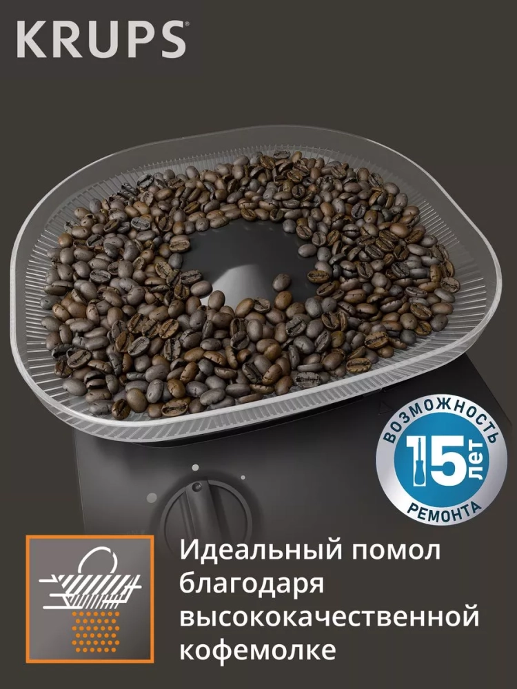 Насладитесь истинным и ароматным вкусом любимого напитка приготовленным с помощью кофеварки Krups Grind Aroma!