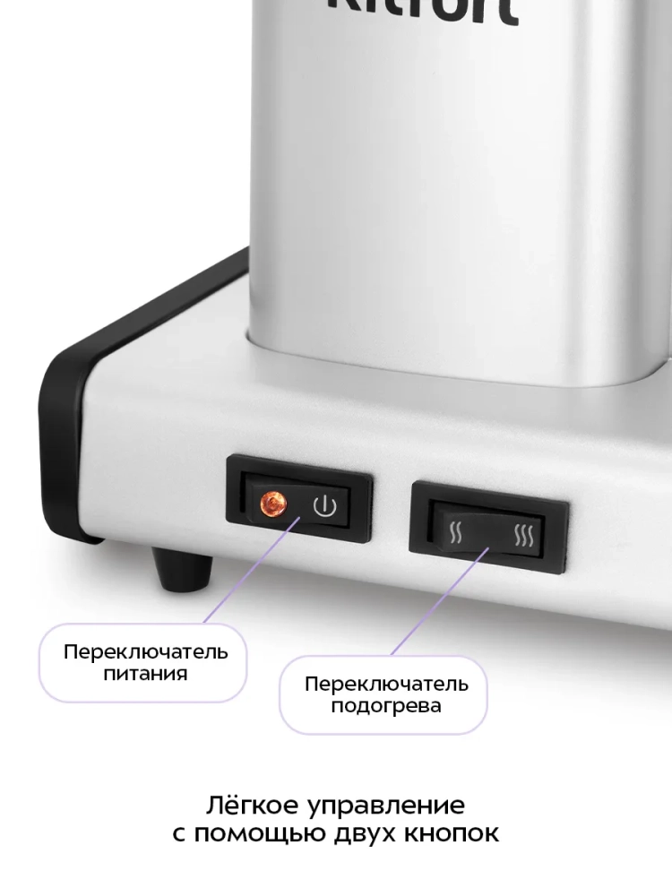 Управление кофеваркой очень простое и осуществляется при помощи двух переключателей.
