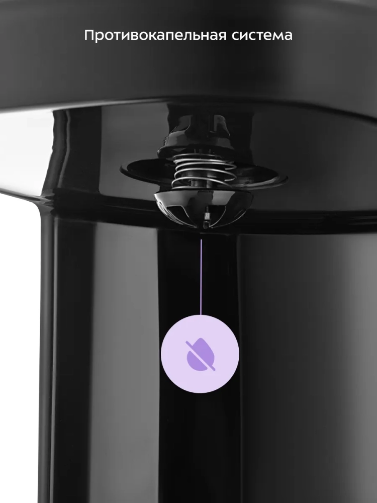 Воронка кофеварки оборудована противокапельной системой — затвором, приостанавливающим подачу кофе при вынимании кофейника из кофеварки. Вы можете налить кофе в чашку, не дожидаясь окончания приготовления.