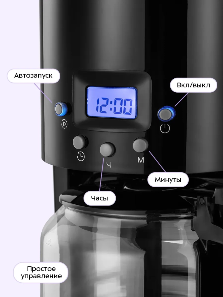 Функция отложенного старта позволит начать приготовление кофе в заданное время. Установите время приготовления, и к моменту, когда вы проснетесь, вас будет ждать ароматный свежезаваренный кофе.