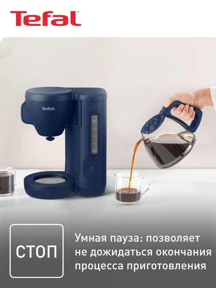 Вы сможете наслаждаться кофе в любой момент благодаря умной паузе портативной кофеварки Тефаль и наливать напиток не дожидаясь окончания процесса приготовления. Кофейник устройства имеет объем 1,25 л, что идеально подойдет для того, чтобы собрать большую компанию друзей. А функция поддержания температуры электрокофеварки поможет сохранить кофе горячим в течение 30 минут после заваривания.