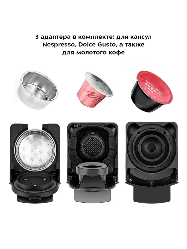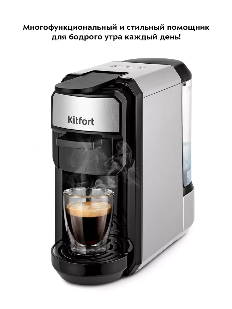 Кофеварка Kitfort КТ-7192 (3 в 1) — это универсальное устройство, которое сочетает в себе функции капсульной и рожковой кофеварки. Она идеально подходит для использования с капсулами Nespresso и Dolce Gusto, а также для молотого кофе. Это делает её отличным выбором как для любителей классического эспрессо, так и для тех, кто предпочитает более сложные напитки с молочной пенкой. Эта кофеварка позволяет быстро приготовить эспрессо всего за 25 секунд или лунго за 47 секунд. Благодаря капучинатору вы сможете самостоятельно создавать воздушную пенку для вашего любимого капучино. Съемный резервуар для воды и три адаптера делают использование устройства простым и удобным. Кофеварка "3 в 1" от Kitfort предлагает уникальную возможность готовить кофе из капсул или использовать её как традиционную рожковую кофеварку. Это особенно удобно тем, кто ценит участие в процессе приготовления напитка и хочет экспериментировать с различными рецептами. Капсульные кофеварки обеспечивают быстрый процесс приготовления: достаточно поместить капсулу в адаптер — никаких дополнительных действий не требуется! Капсулы герметично упакованы, что позволяет долго сохранять свежесть кофе без необходимости измерять количество молотого продукта. Kitfort KT-7192 совмещает все преимущества различных типов кофемашин: скорость приготовления из капсул и возможность экспериментов с молотым кофе. Не забывайте о важности выбора сорта зерен — вкус зависит от степени обжарки и помола.