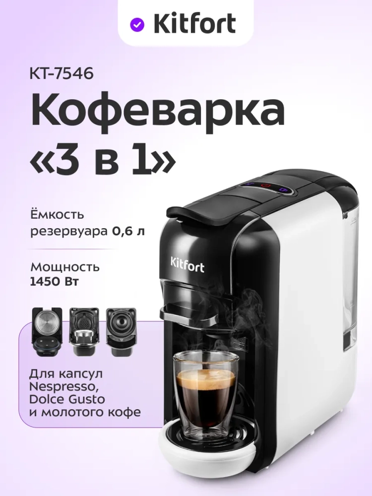 Кофемашина Kitfort КТ-7546 — это идеальное решение для тех, кто ценит качество и разнообразие. Она сочетает в себе лучшие качества капсульных и рожковых кофеварок, обеспечивая превосходный вкус и аромат каждого напитка. Независимо от того, предпочитаете ли вы капсулы или молотый кофе, эта техника удовлетворит все ваши потребности.