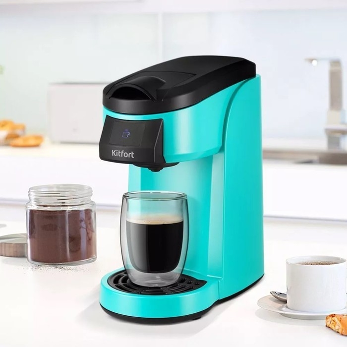Кофеварка Kitfort КТ-7121-2, капсульная, 800 Вт, 0.36 л, бирюзовая