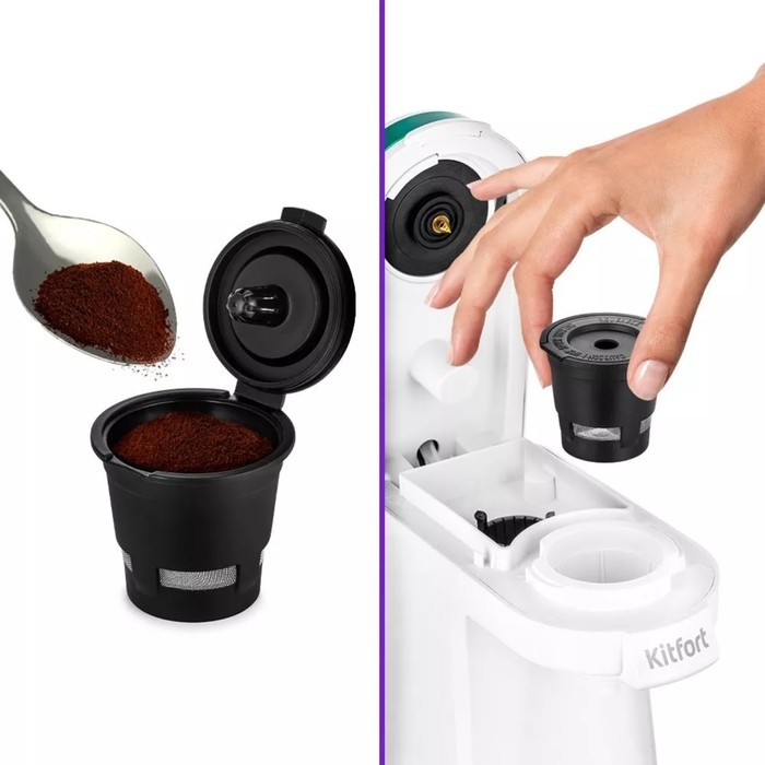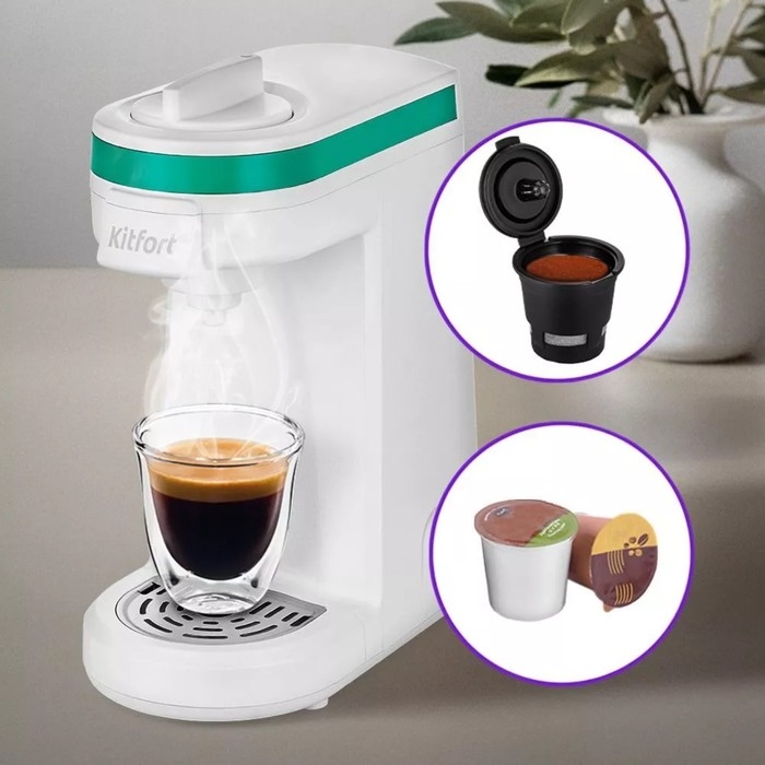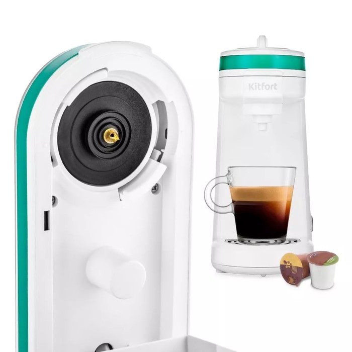 Кофеварка Kitfort KT-7122-2, капсульная, 800 Вт, 0.36 л, бело-зелёная