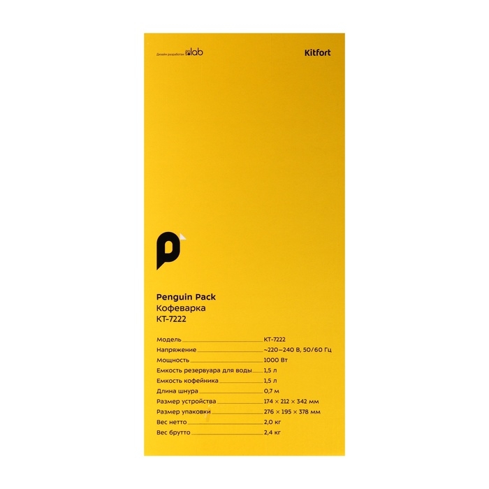 Кофеварка Kitfort КТ-7222, капельная, 1000 Вт, 1.5 л. Чёрно-серебристая